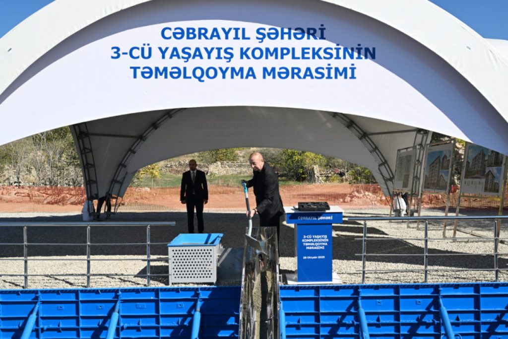 Azərbaycan Respublikasının Prezidenti İlham Əliyev oktyabrın 28-də Cəbrayıl şəhərində ikinci və üçüncü yaşayış komplekslərinin təməlini qoyub. İkinci yaşayış